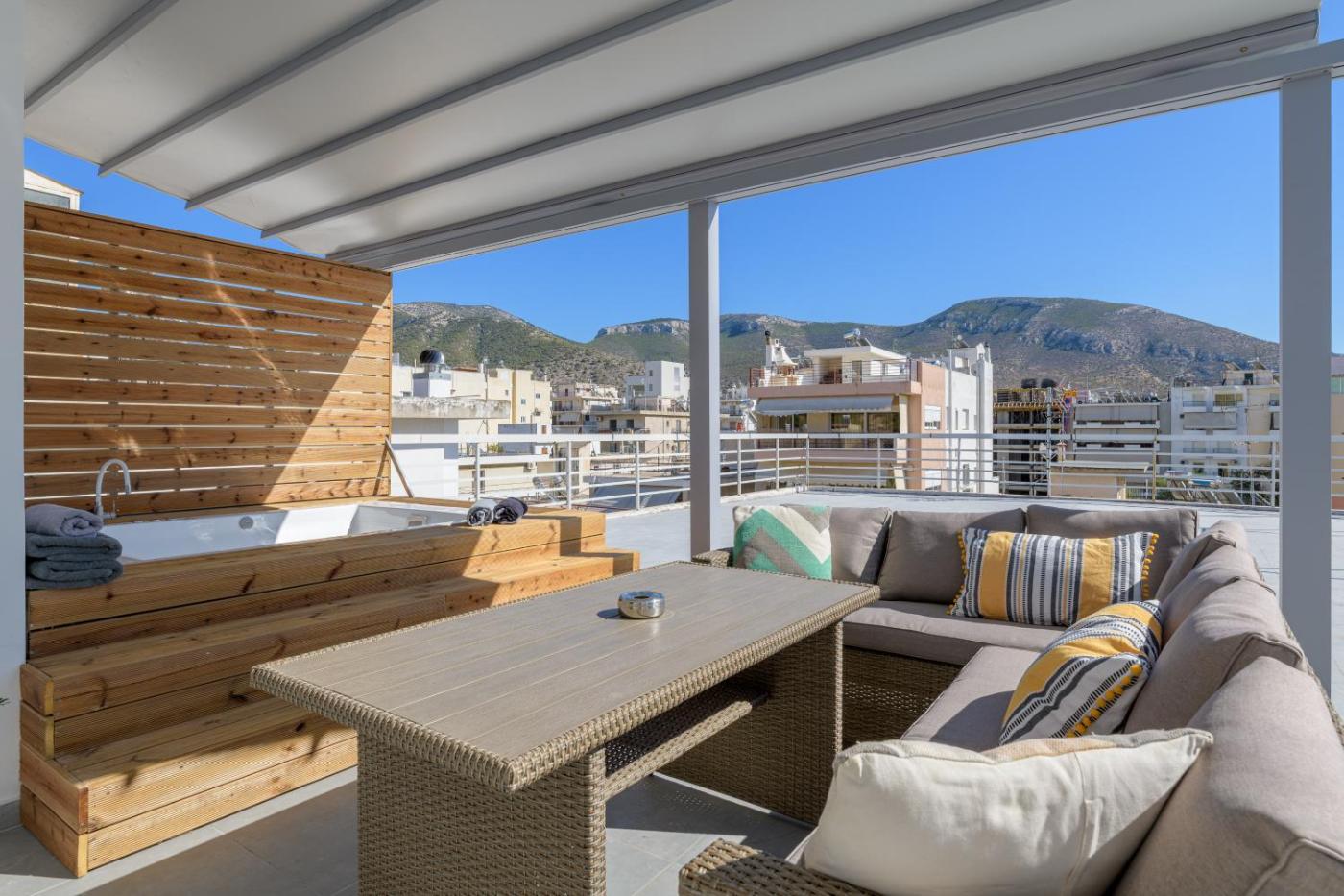 Set within the Glyfada district in Athens, NEW Dodekanisou 53 Glifada has air conditioning, a terrace, and mountain views. With city views, this accommodation features a balcony. The apartment has a hot tub and a lift.