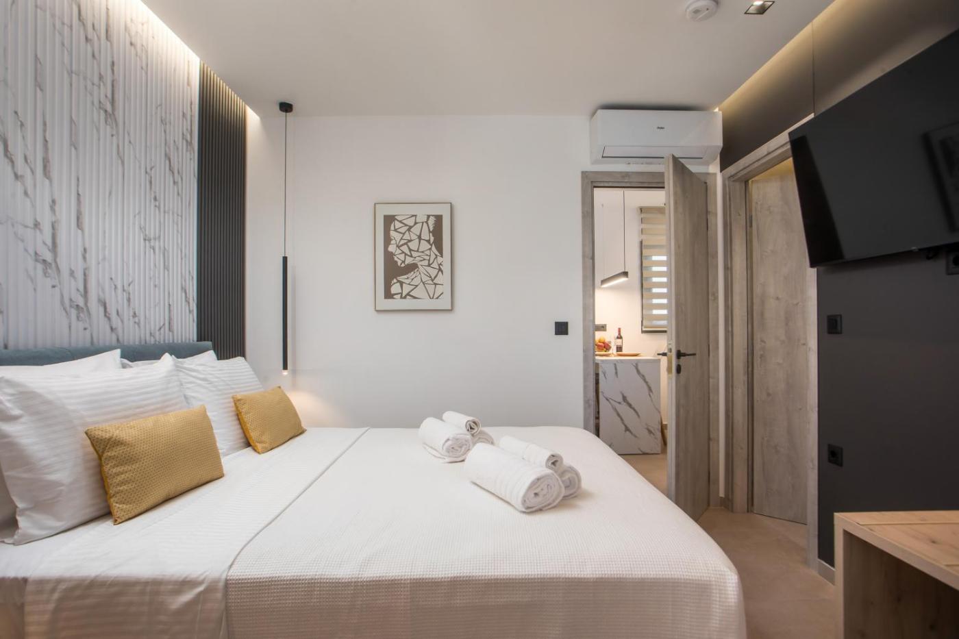 One-Bedroom Apartment. The air-conditioned apartment features 1 bedroom and 1 bathroom with a bath or a shower and a hairdryer. A kitchen equipped with a refrigerator, kitchenware and a tea and coffee maker is available for cooking and storing food. Featuring a terrace with city views, this apartment also provides a washing machine and a flat-screen TV with streaming services. The unit offers 1 bed.