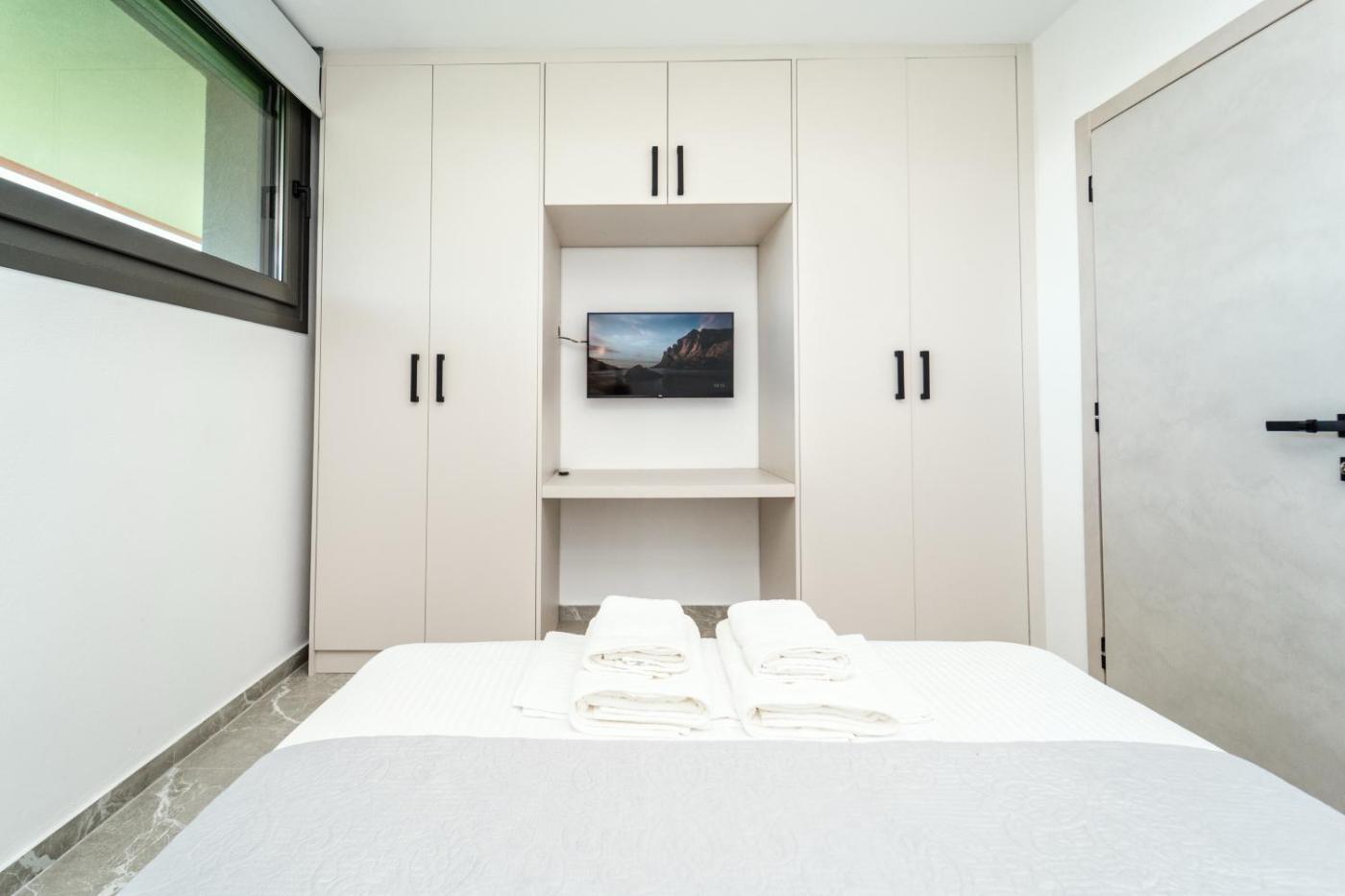 Two-Bedroom Apartment. Boasting a private entrance, this air-conditioned apartment includes 1 living room, 2 separate bedrooms and 2 bathrooms with a shower and a hairdryer. The apartments kitchen, which has a refrigerator, is available for cooking and storing food. The spacious apartment offers a flat-screen TV, a washing machine, a coffee machine, a seating area as well as sea views. The unit has 3 beds.