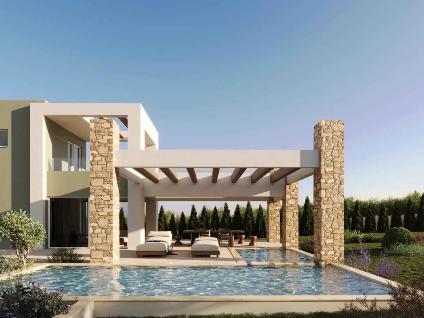 Villa - 2 Bedroom with private pool. Offering a private pool with a furnished sun terrace, this elegantly decorated and air-conditioned, 2-bedroom villa features Aegean Sea, garden and pool views. Fitted with a fireplace, it consists of a living room with satellite TV and a kitchen with dining area and oven with hobs. Free WiFi is provided. ;