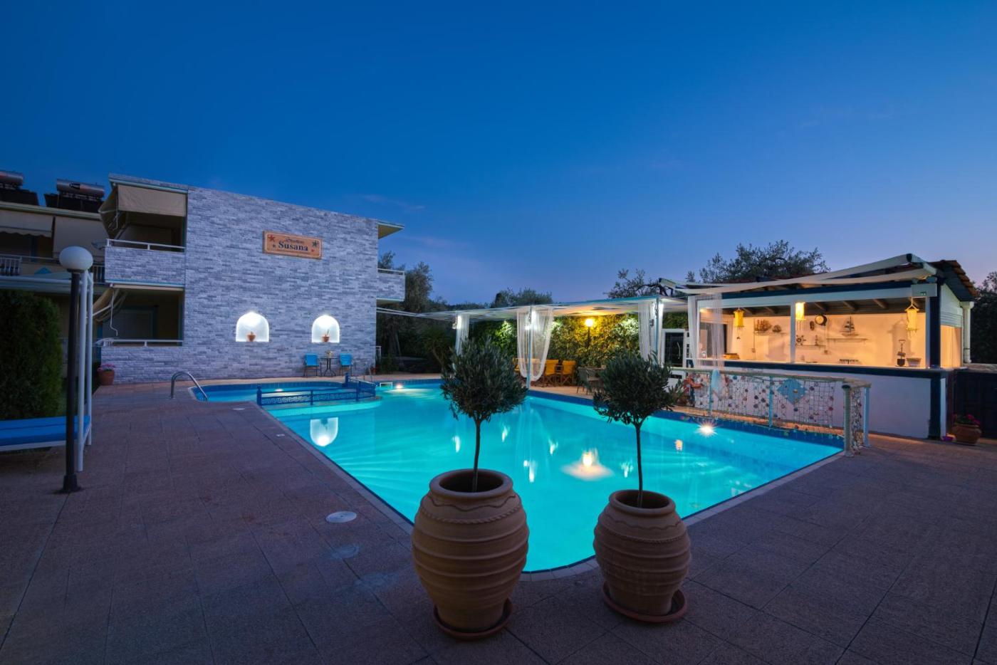 Featuring garden views, Studios Suzanna offers accommodation with a seasonal outdoor swimming pool, free bikes and a garden, around 300 metres from Potos Beach. It is43 km from Port of Thassos and features a tour desk. Boasting family rooms, this property also provides guests with a childrens playground.