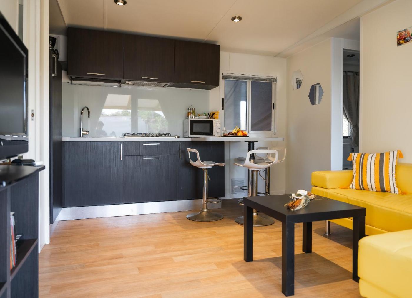 Two-Bedroom Apartment. Featuring a private entrance, this air-conditioned apartment consists of 1 living room, 2 separate bedrooms and 2 bathrooms with a walk-in shower and a hairdryer. In the fully equipped kitchen, guests will find a stovetop, a refrigerator, kitchenware and a microwave. Boasting a terrace with sea views, this apartment also provides a washing machine and a flat-screen TV. The unit offers 4 beds.