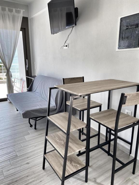 Studio with Terrace. In the fully equipped kitchenette, guests will find a stovetop, a refrigerator, kitchenware and a microwave. The studio offers air conditioning, soundproof walls, a terrace with sea views as well as a private bathroom boasting a shower. The unit has 1 bed. ;